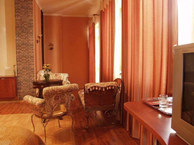 Art-Rustic Hotel offers 13 rooms and the total capacity is 36 persons. Each room is unique and differ from others in fitting out, design, and capacity. The rooms are equipment with French-beds, TV, Internet, phones, air conditions, fridges, mini-bars, word-robs and in each bathroom has hairdryer.
