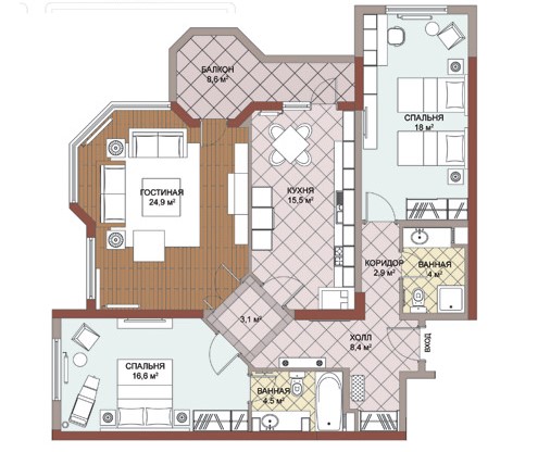 3 êîìíàòíàÿ êâàðòèðà óë. Áóêóðåøòü,96\1 CROWN PLAZA